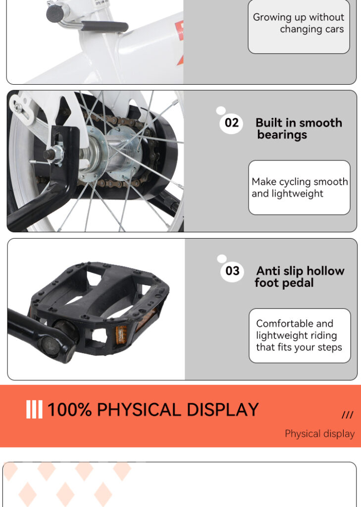 • The kids bike equips with detachable training wheels and height-adjustable saddle&handlebar,caters to the physiological needs of your child at different stages