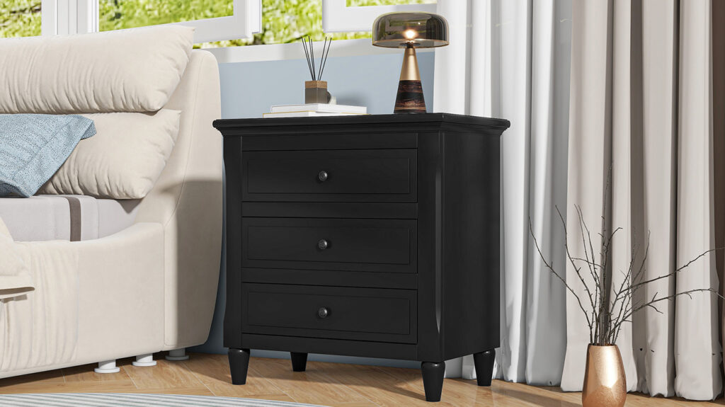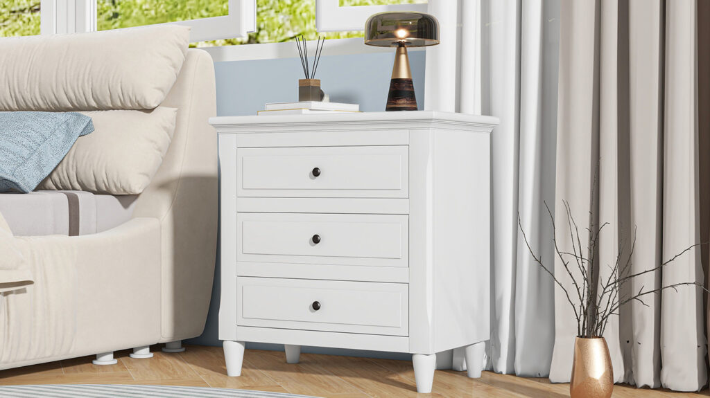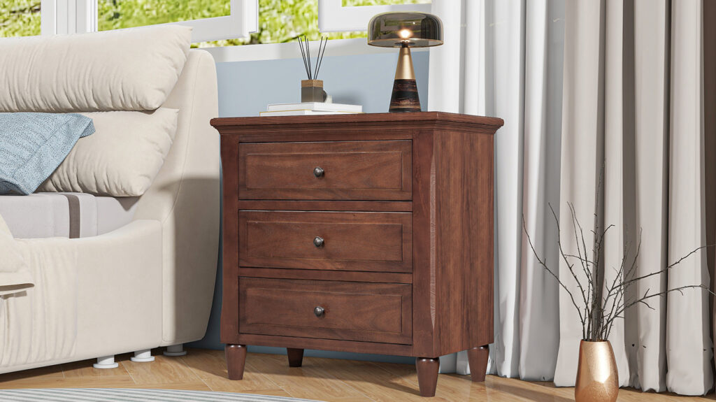 U_STYLE 28”Pine Wood Nightstand with 3 Drawers