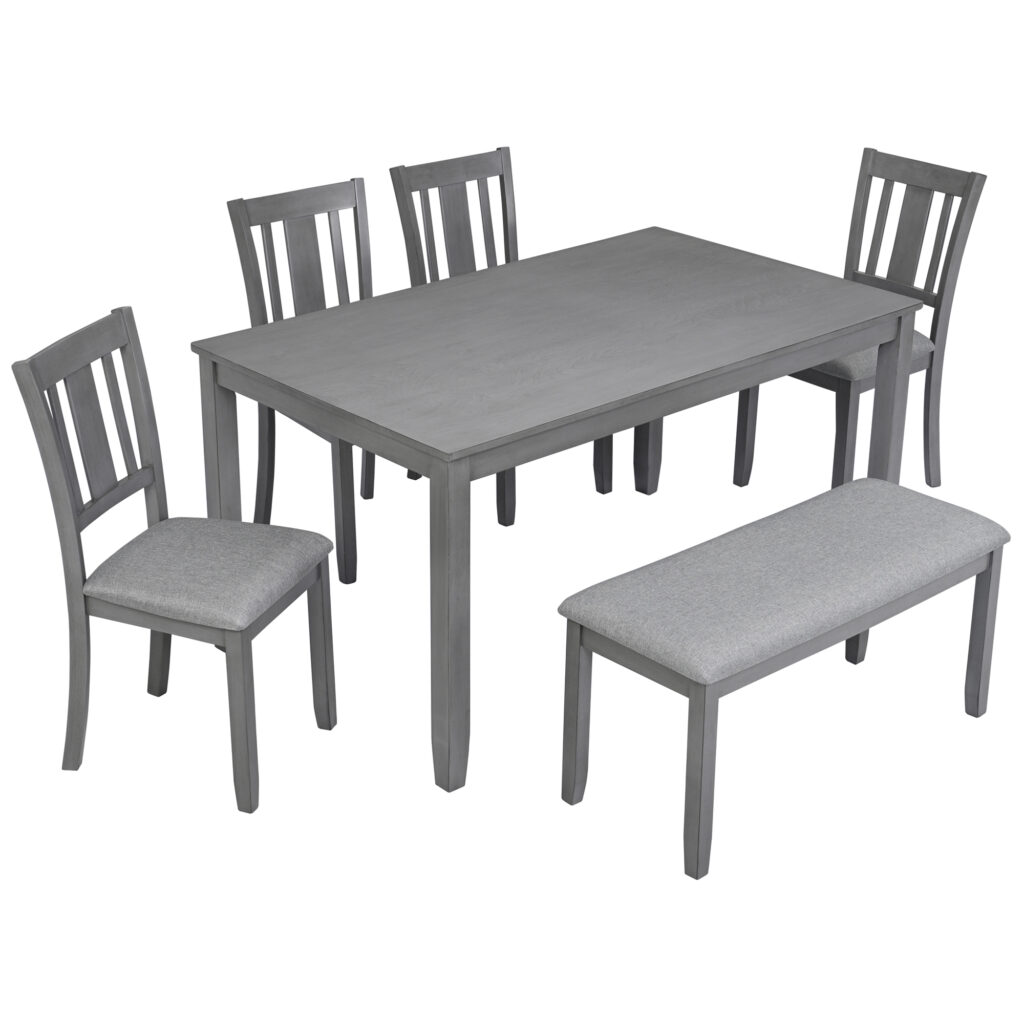 6 Piece Dining Table Set, 58.5″ Rectangular Wooden Dining Table with 4 Upholstered Chairs and a Bench, Kitchen Table and Chairs Set for 4-6 People
