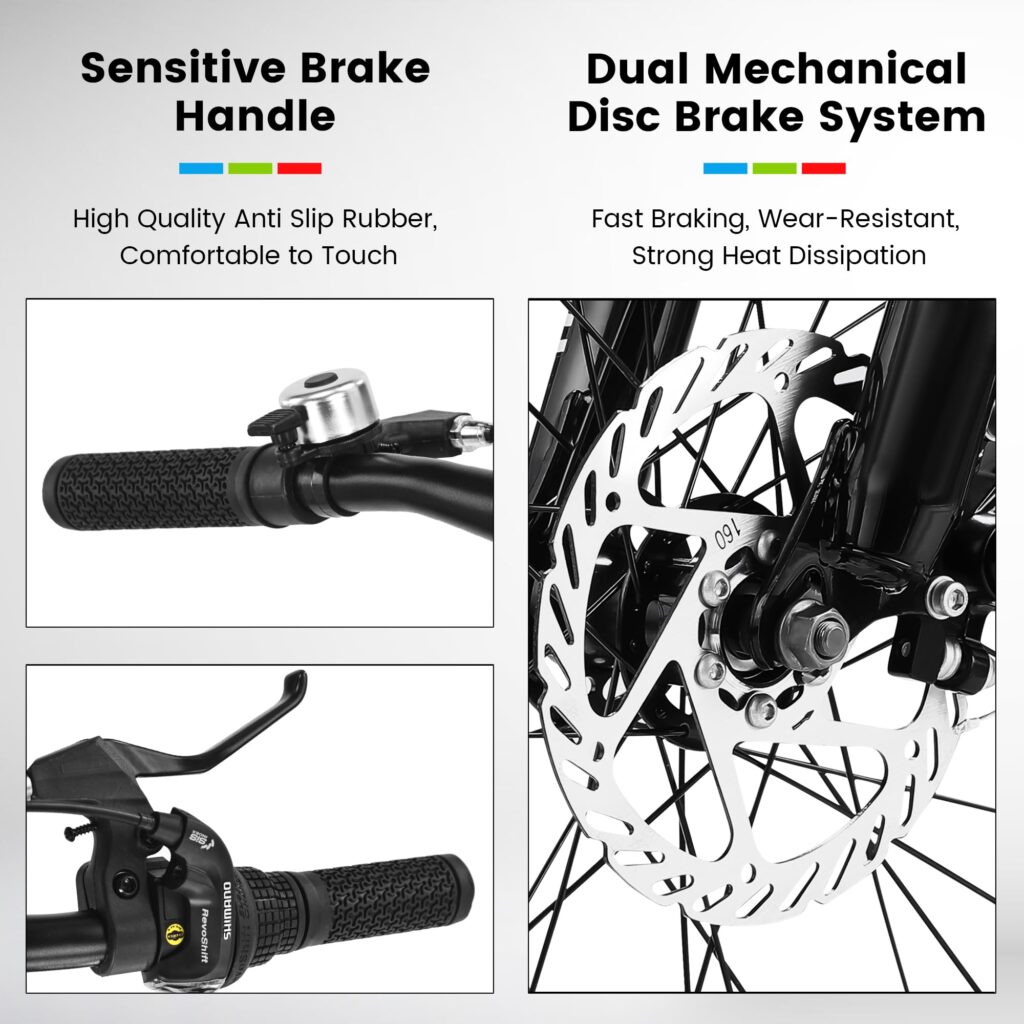 20 Inch Mountain Bike for Kids and Teenagers from 8-14 years, Disc Brakes, Durable Wide Tires, Front Suspension, 7-Speed.